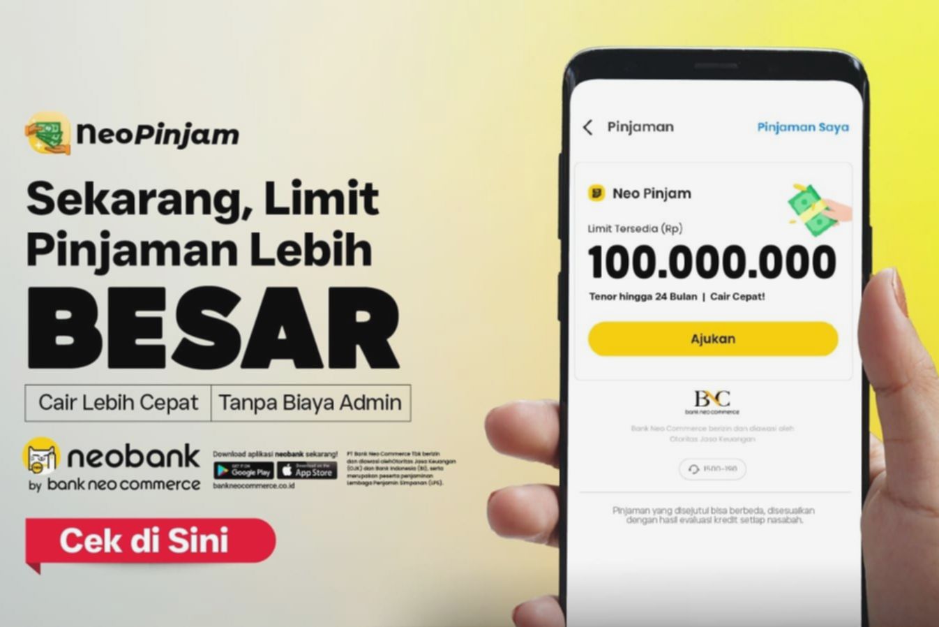 BNC hadir dengan produk Neo Pinjam untuk membantu masyarakat yang belum stabil secara finansial. Neo Pinjam adalah pinjaman KTA bank proses cepat yang kini limitnya sudah ditingkatkan menjadi hingga Rp100 juta. Peningkatan limit efektif memperluas akses pinjaman, terlebih tenornya juga meningkat menjadi 24 bulan yaitu dua kali lipat dari sebelumnya.