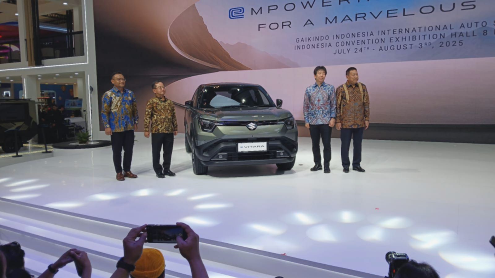 Pada pembukaan GAIKINDO Indonesia International Auto Show (GIIAS) di ICE BSD, Tangerang, PT Suzuki Indomobil Sales (SIS) secara resmi memperkenalkan Suzuki e Vitara. Kehadiran SUV kompak ini menandai tonggak sejarah penting bagi Suzuki di Indonesia, menjadikannya mobil Battery Electric Vehicle (BEV) pertama dari pabrikan berlambang huruf S tersebut.